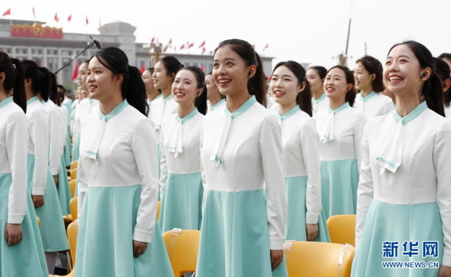 庆祝中国共产党成立100周年大会现场,数千名合唱、献词队员身着由北京服装学院和迪尚集团联合研发生产的节日盛装,倾情歌颂中国共产党恢弘的百年征程。青蓝色系衣衫,清新、庄重,给观众留下深刻印象。