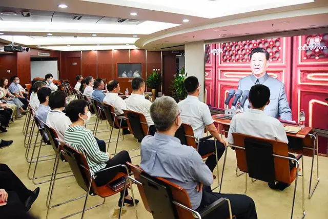 今天上午,恒天集团组织所属企业观看庆祝中国共产党成立100周年大会直播,共同致敬党的百年华诞。
