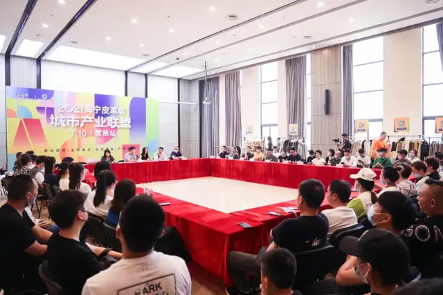 7月10日,以“质造X品牌”“设计X制造”“2021海宁皮革城城市产业联盟等为主题的产业对接会陆续召开,活动中,服装企业、批发客商、品牌代理商、时尚买手等客户与参展商进行深度有效的面对面对接,促成产业业间纵向和横向交流与合作。