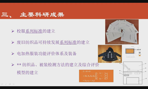 北京服装学院服装安全研究检测中心教授张天骄介绍了检测中心科研仪器、项目进展以及科研成果情况。该中心一直专注于服装的检测、评价与开发,在纺织品生态安全研究、纺织品特种功能评价方法以及服装综合评价方法等方面具备了坚实的检测技术和研究能力,并且已经形成了相关的国家标准和团体标准。