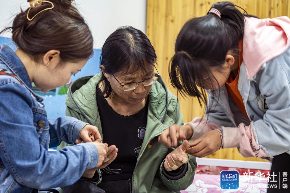 每天回到福利院,孩子们都会帮张桂梅撕掉贴了一天的止痛胶带(3月23日摄)。新华社记者 江文耀 摄