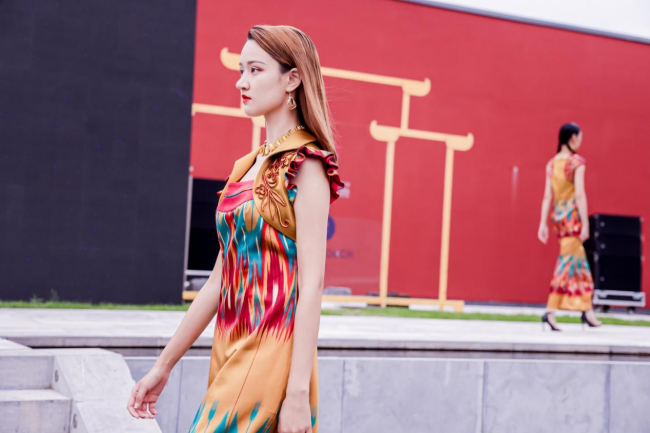 9月16日,在北京隆福文化中心,一场别具特色的时装发布会成为了2021北京时装周当日的焦点,发布会的主角是丝绸之路活化石——和田市艾德莱斯绸。古老的艾德莱斯焕颜亮相首都北京,携手丝路霓裳品牌创始人、设计总监孙秀琴以及北京大华时尚PURE TOUCH品牌联袂进行创新再设计,在2021北京时装周非遗时尚会场进行“艾德莱斯之恋”主题新品发布。远道而来的和田彩虹亮相首都文化金三角,浓郁的民族风情与首都新国潮地标交相辉映,充分体现了中华民族多元文化的完美交融。