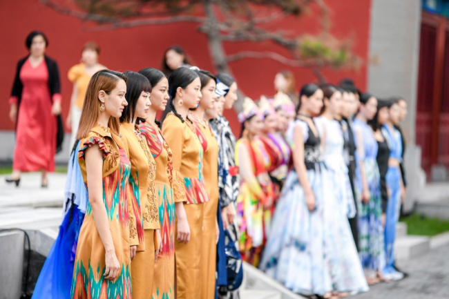 和田市文工团的专业演员们还专门创作了主题歌舞,在北京时装周舞台首发亮相。和田市艾德莱斯通过各种形态从首都北京播撒至全国乃至全世界,引领民族文化精华的传播、传承、创新和转化。