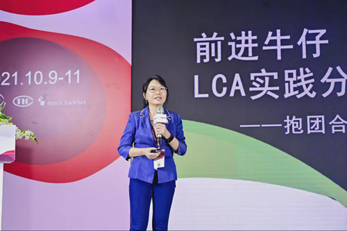 广东前进牛仔布有限公司董事、总经理王宗文进行了LCA实践分享,讲述了前进牛仔的绿色发展历程,可持续发展的经验和心得以及LCA项目的收获。她表示,“让牛仔成为最环保的面料之一”是前进牛仔可持续发展的目标。多年来,前进牛仔从纱线的研发,设备的创新、原料的选用、工艺设计都围绕着绿色减碳,环保创新的目标开展,拿到了一系列的环保资质认证。公司成立减碳小组研究碳排放,加入“3060计划”,参与中纺联社责办的 LCA碳足迹跟踪。2021年8月6日,在中国纺织工业联合会社会责任办公室的支持下,启动了“前进X天丝™牛仔产业链零碳行动”,在自身影响范围内,采取行动积极推动行业绿色升级,打造可持续时尚牛仔产品。