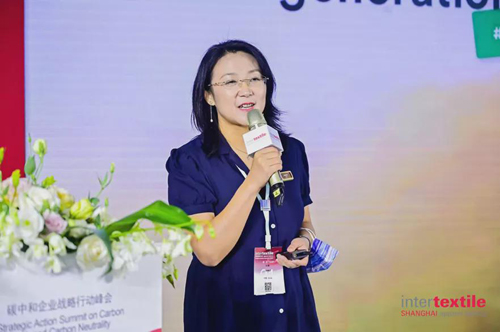 兰精集团北亚区可持续发展经理刘爽分享了“兰精集团可持续发展理念及实践”,她谈到,兰精纤维长期致力于可持续发展战略,制订了明确的目标和承诺,将脱碳列为关键优先事项,实施内外部减排措施,推出零碳纤维,坚定承诺到2050年实现碳中和。兰精集团希望赋予废弃物新的生命,与合作伙伴、下游客户、非营利组织和行业协会一起,共同推动纺织行业向低碳、绿色、循环及可持续方向的持续发展。