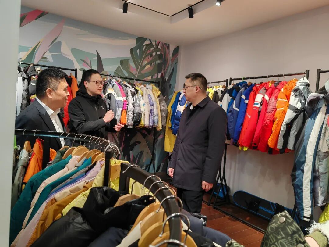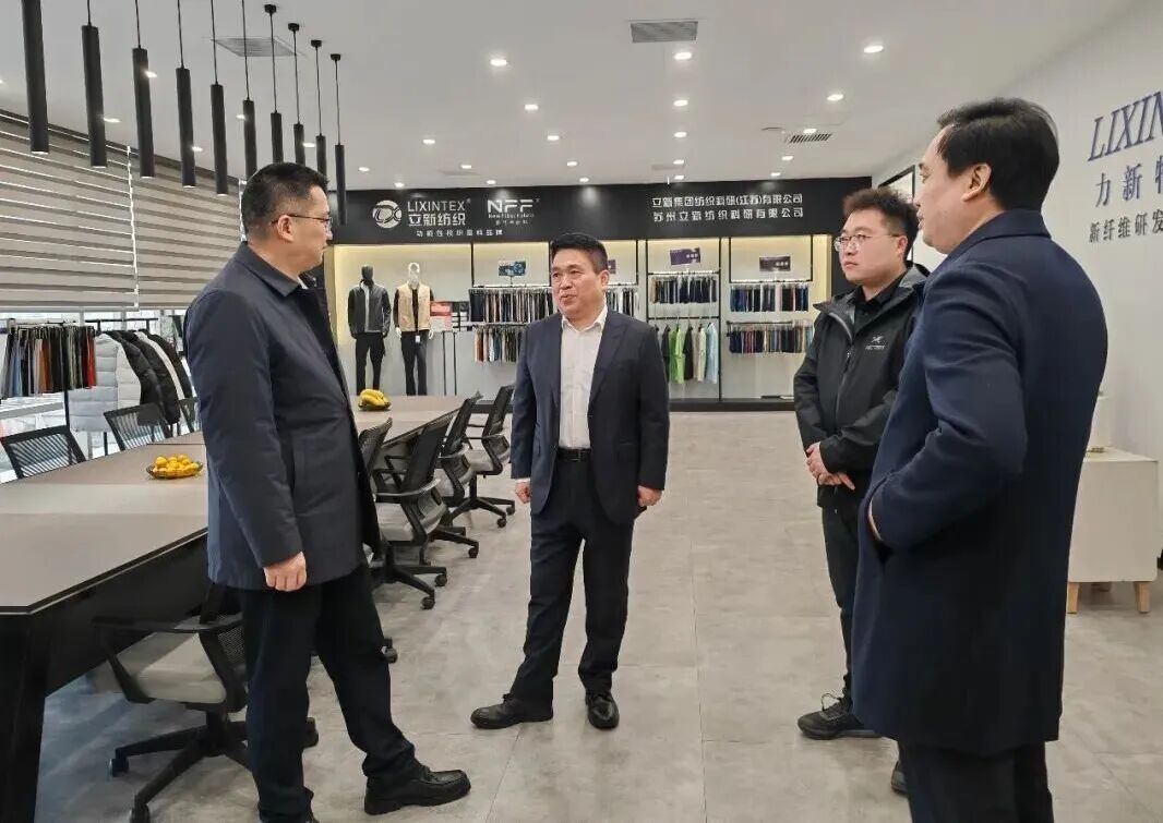 在立新纺织科研板块,总经理栾勇陪同调研,并详细汇报了功能性梭织面料的研发体系、产品应用及技术突破情况,重点展示了为安踏、斐乐等国内头部品牌提供面料解决方案的最新成果。