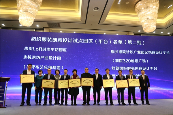 在本次会议期间,工信部消费品工业司纺织处处长曹庭瑞宣读了第二批纺织服装创意设计试点园区(平台)名单,并举行了授牌仪式,上海尚街loft时尚生活园区、浙江桐乡濮院针织产业园区创意设计平台(濮院320创意广场)、浙江余杭家纺产业设计园、山东舒朗国际时尚创意设计平台、广东红棉国际时装城、陕西省西咸纺织服装创新园、青岛东方时尚中心、宁波创客157创业创新园等入选。
